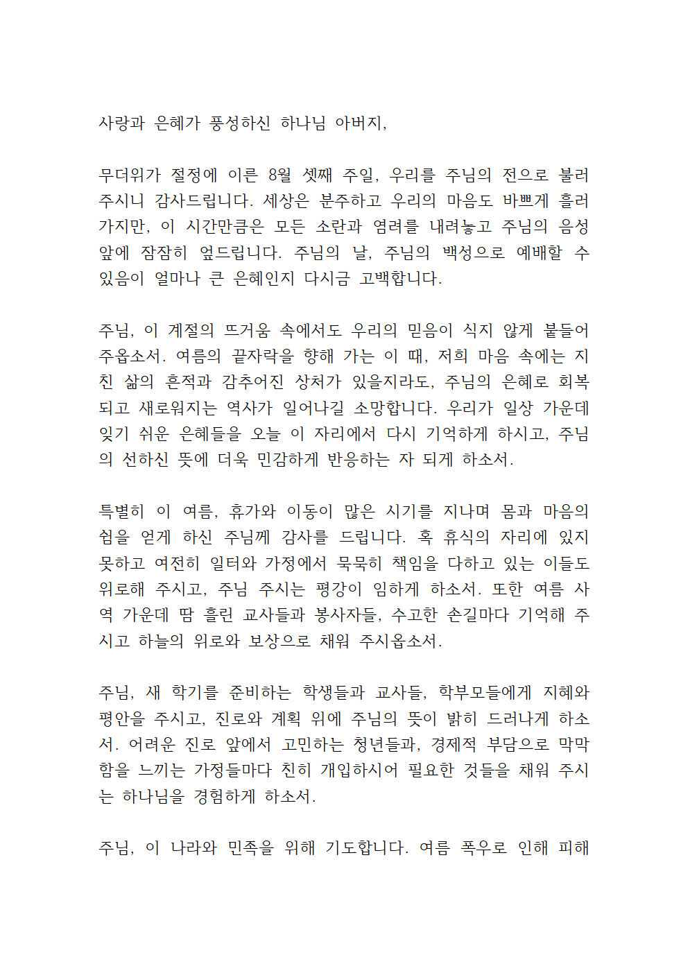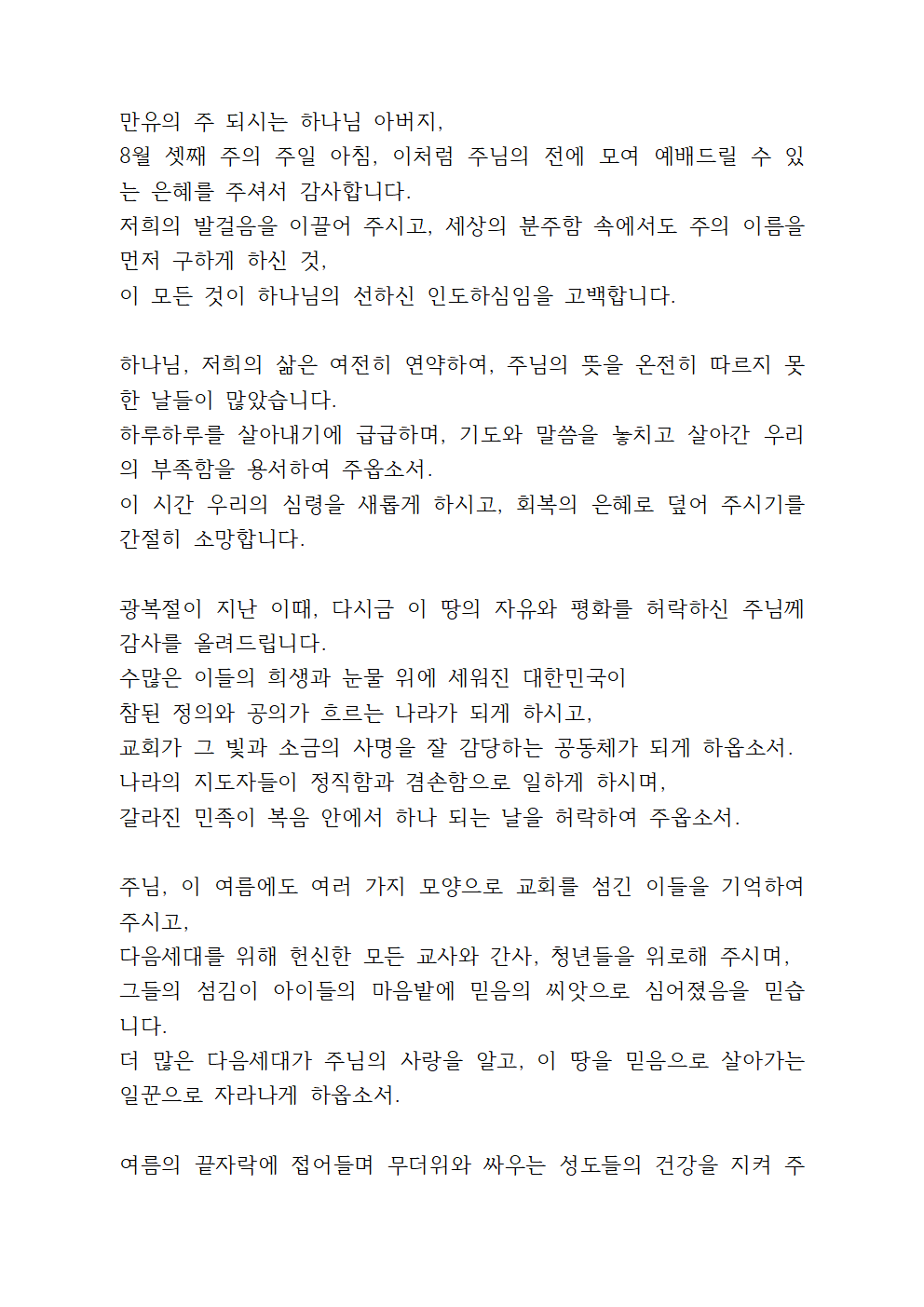 '8월 3주 대표기도문 모음 세 가지'